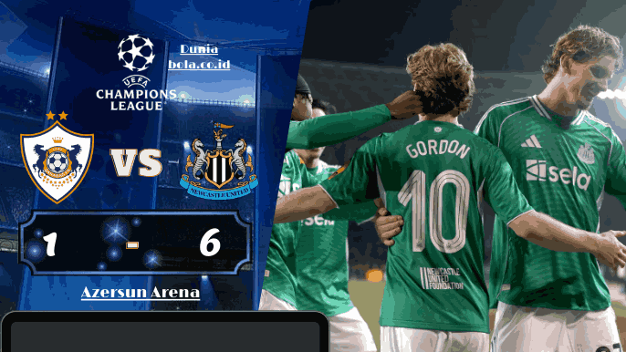 Gordon Menggila, Newcastle Hancurkan Qarabag 6-1 di Baku