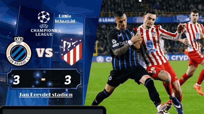 Drama 6 Gol di Belgia: Club Brugge Tahan Atletico 3-3 pada Leg Pertama Play Off UCL