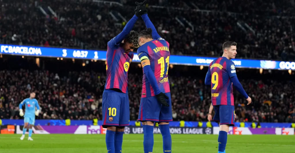 Copenhagen sempat mencuri keunggulan melalui Viktor Dadason pada menit 4, tetapi setelah jeda Barcelona membalas empat gol beruntun: Lewandowski menit 48, Yamal menit 60, Raphinha penalti menit 69, dan Rashford menit 85. Urutan ini terasa seperti tangga: pertama menyamakan, lalu membalikkan, kemudian menambah jarak, terakhir mematikan harapan lawan.