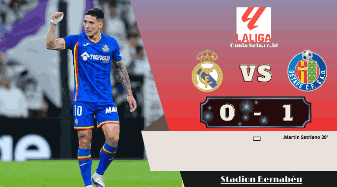 Real Madrid kalah 0 1 dari Getafe di Santiago Bernabeu. Gol tunggal lahir pada menit ke 39 melalui Martín Satriano, sebuah sepakan volley yang memanfaatkan bola liar setelah sapuan yang tidak sempurna. Dalam satu sentuhan, Getafe mengubah situasi biasa menjadi pukulan telak.