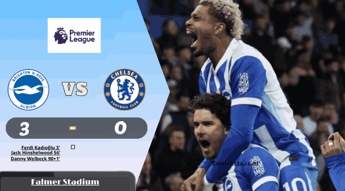 Brighton and Hove Albion tampil tajam, tenang, dan sangat efisien saat menumbangkan Chelsea dengan skor 3 0 dalam laga Premier League yang digelar di Amex Stadium. Kemenangan itu datang lewat satu gol indah Kaoru Mitoma dan dua gol Yankuba Minteh, sekaligus menegaskan bahwa Brighton benar benar tahu cara melukai tim tamu dari London barat tersebut. Pertandingan ini juga menjadi kemenangan kedua Brighton atas Chelsea dalam rentang sepekan setelah sebelumnya mereka menyingkirkan lawan yang sama di ajang Piala FA.