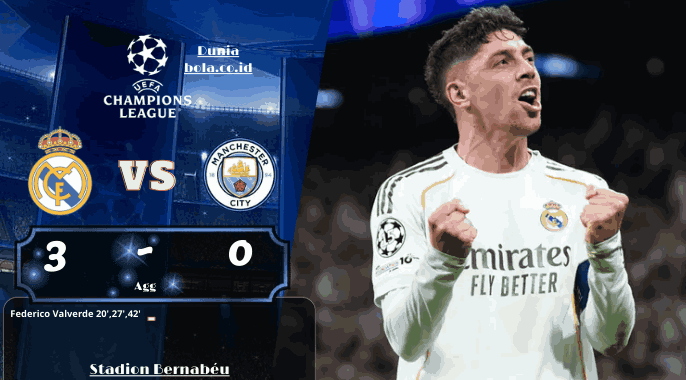 Pertandingan besar di Santiago Bernabéu pada 11 Maret 2026 berubah menjadi malam yang sangat berat untuk Manchester City. Real Madrid menang 3-0 pada leg pertama babak 16 besar Liga Champions, dan seluruh gol itu datang dari kaki Federico Valverde yang tampil menggila sejak babak pertama. Laga yang awalnya diprediksi berjalan ketat justru menunjukkan satu hal yang sangat jelas, yakni Madrid terlihat jauh lebih siap membaca ritme pertandingan, sementara City berkali kali terjebak oleh transisi cepat tuan rumah.