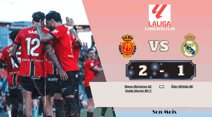 Real Madrid datang ke markas Mallorca dengan status tim yang lebih diunggulkan, tetapi pulang dengan cerita pahit. Laga La Liga di Estadi de Son Moix pada 4 April 2026 berakhir 2-1 untuk tuan rumah setelah Vedat Muriqi mencetak gol penentu pada masa tambahan waktu. Mallorca lebih dulu unggul lewat Manu Morlanes, Madrid sempat menyamakan kedudukan melalui Éder Militão pada menit ke-88, lalu kembali tumbang hanya beberapa saat kemudian. Hasil ini menjadi pukulan besar bagi perburuan gelar Madrid, sementara Mallorca memperoleh dorongan penting dalam pertarungan menjauh dari zona bawah.