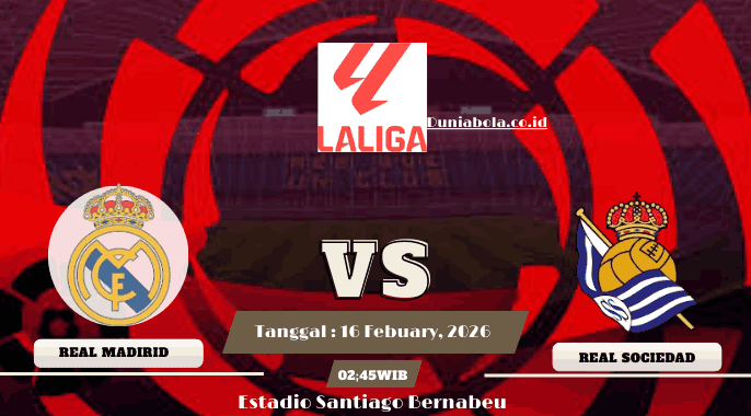 Real Madrid kembali ke Santiago Bernabéu pada Sabtu, 14 Februari 2026, untuk menjamu Real Sociedad di LaLiga. Jadwal kick off tercatat pukul 20.00 UTC atau 21.00 waktu Madrid, dengan posisi kedua tim di papan klasemen juga memberi rasa big match yang tidak selalu hadir di duel ini.