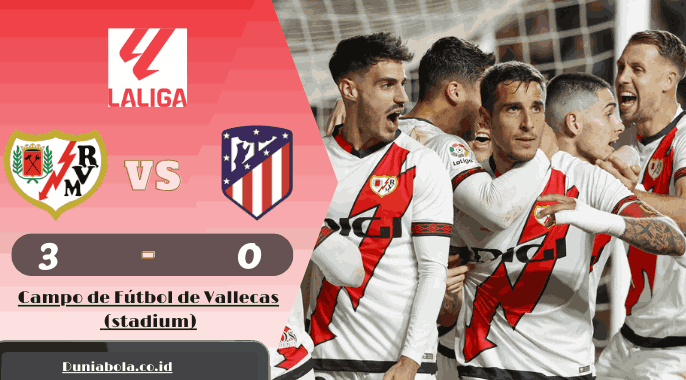 Rayo Vallecano menutup malam di Leganes dengan cara yang nyaris tak disangka siapa pun. Di Estadio Municipal de Butarque, Minggu 15 Februari 2026 waktu setempat, Rayo menghajar Atletico Madrid dengan tiga gol tanpa balas dalam laga LaLiga yang sejak awal sudah terasa “aneh” karena dipindah venue dan dimainkan di depan tribun yang banyak kosong.