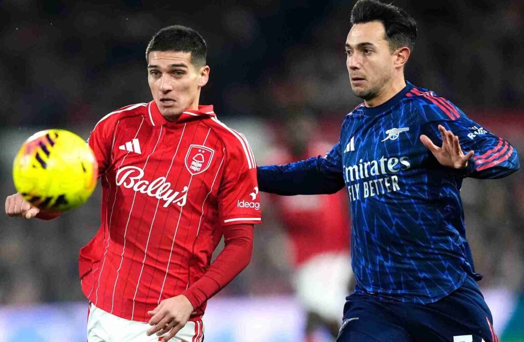Forest bekerja keras menutup jalur umpan vertikal, terutama ke area depan kotak penalti. Ada satu nama yang mencuri perhatian karena tampil konsisten menahan tekanan, menjaga struktur, dan ikut memutus aliran serangan Arsenal.